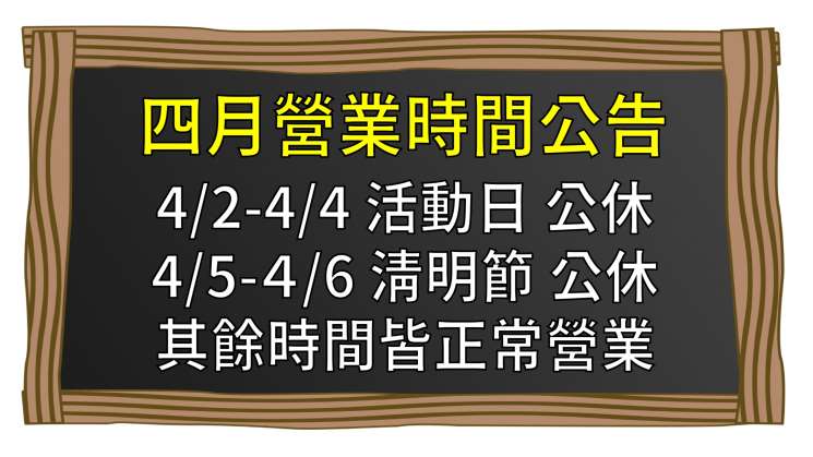 清明連假4/2-4/6皆公休課程及零打皆暫停其餘時段皆正常營業喔祝大家假期愉快